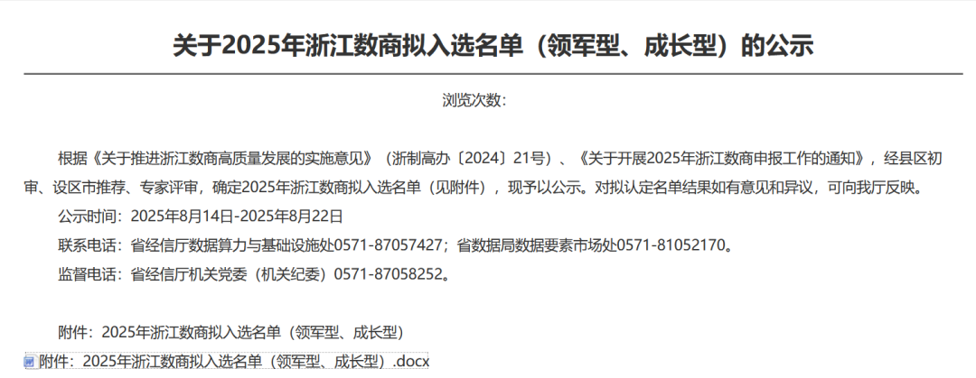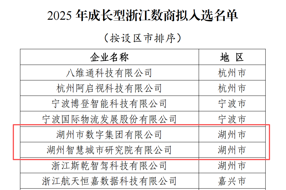 近日,浙江省經(jīng)濟和信息化廳發(fā)布《2025年浙江數商擬入選名單》。市城市集團下屬數字集團和智慧城市研究院同時(shí)入選成長(cháng)型浙江數商,全市三家入選企業(yè)中占兩席。